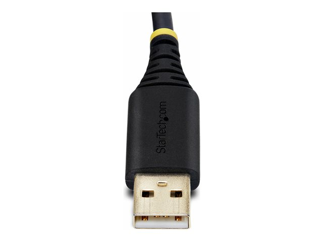 The StarTech.com 3ft (1m) USB to Null Modem Serial Adapter Cable is a connectivity solution designed for demanding applications. With its rugged TPE construction, this cable is built to withstand harsh conditions, ensuring reliability and longevity. It features an FTDI controller and interchangeable DB9 screws/nuts, providing versatile connectivity options for a wide range of devices. The cable also boasts COM retention, which ensures consistent and reliable communication between devices. Additionally, it is equipped with Level-4 ESD protection, offering safeguard against electrostatic discharge and ensuring stable data transmission. Whether you're connecting in a Windows, macOS, ChromeOS, or Linux environment, this adapter cable is engineered to deliver superior performance and protection.