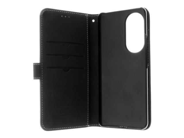 Insmat - Lommebok for mobiltelefon - ekte skinn, bomullssting, PC-bakplate - svart - for Honor 90 650-3175