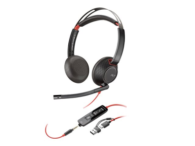 Poly Blackwire 5220 - Hodesett - on-ear - kablet - USB-C, 3,5 mm jakk - svart - Certified for Skype for Business, Cisco Jabber Certified, Avaya Certified, Certified for Microsoft Teams, Zoom Certified, UC-sertifisert, Works With Chromebook Certified 8X231A6