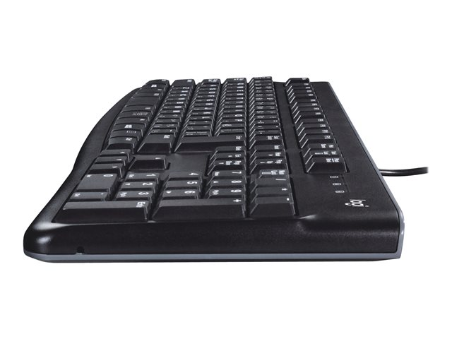 Logitech Keyboard K120 er et usb-tastatur som gjør det lettere å skrive, og som er laget for å vare. Hendene jobber komfortabelt på de flate, lydløse tastene, som har et standardoppsett med F-taster i full størrelse og numerisk tastatur. Du kan bare kople tastaturet til en usb-port på en stasjonær eller bærbar datamaskin, og skrive i vei. Dette slanke tastaturet er ikke bare elegant, det er også robust og vannavstøtende, og det har stødige føtter og taster som varer lenge.