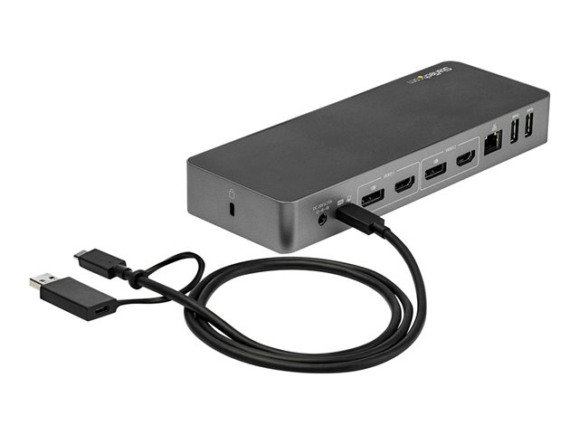 Connect your devices with four USB 3.0 ports: 1x USB-C and 3x USB-A. Fast-charge your USB-C or USB-A smartphone. The dock provides a GbE port (PXE Boot support) and 3.5 mm 4-position headset audio jack. It also includes a security lock slot (K-slot) to protect against theft.
