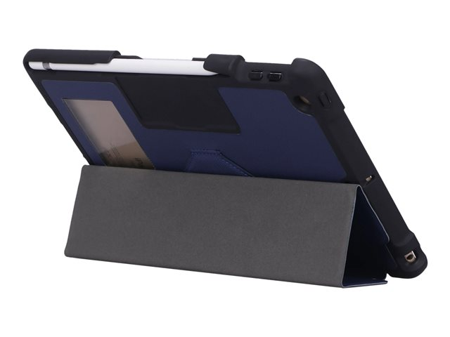 - Cover easily folds into stand without blocking camera