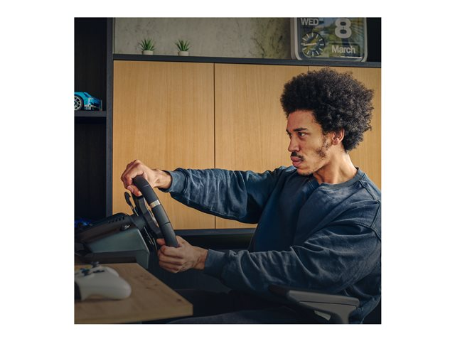 Kompletter racerutstyret for den mest realistiske opplevelsen. Legg til den 6-trinns manuelle Driving Force-skifteren til racerrattoppsettet.
